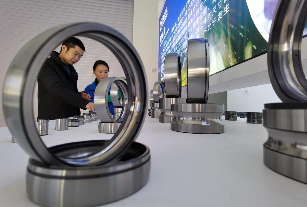 塞艾斯(河北)工业发展有限公司工作人员正在摆放展示轴承产品(杜济中供图)