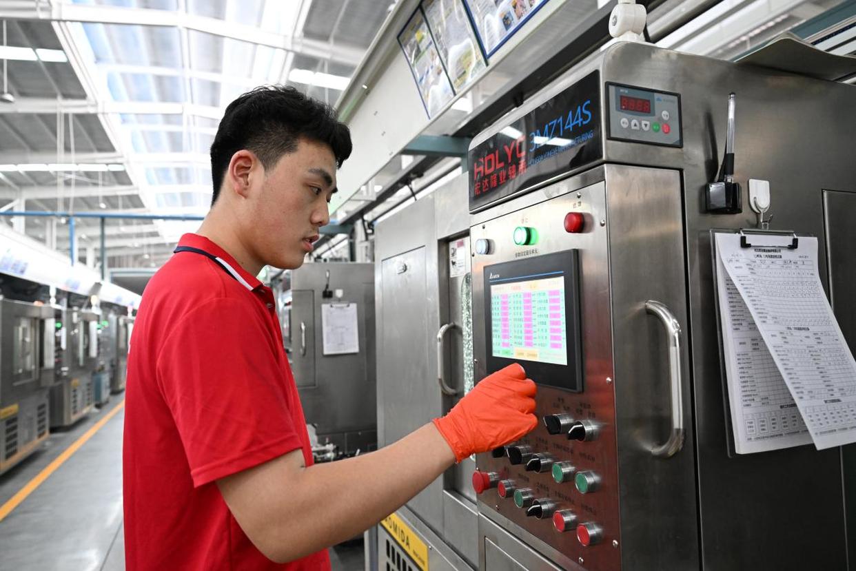 临西轴承企业工作人员操作生产设备(杜济中供图)