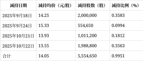 上述减持股份来源为首次公开发行前股份及公司历年送转股份,减持价格区间为13.55元/股至15.33元/股。经计算,本次减持累计套现金额约为7804.28万元(减持均价14.05元/股×减持股数555.465万股)。