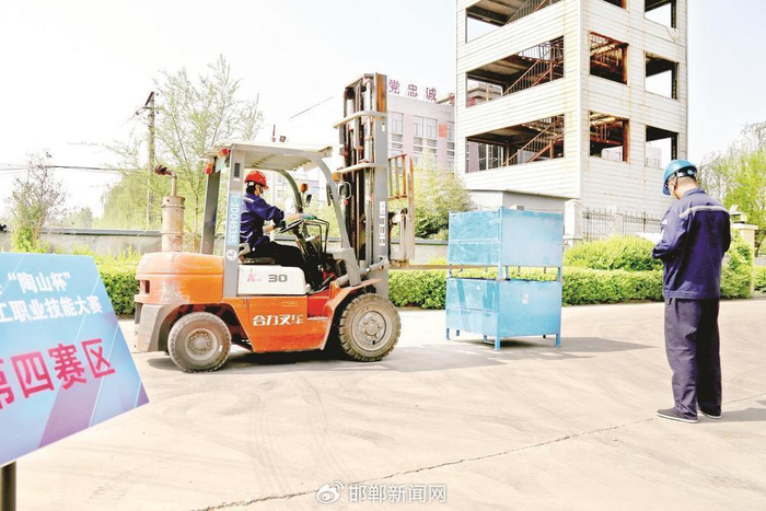 叉车操作技能比赛现场。 郭江鹏 摄