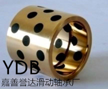 JFB翻边铜基镶嵌式固体润滑轴承,是在高力黄铜的基体上。镶嵌石墨或MoS2固体润滑剂的一种高性能固体润滑产品。它突破了一般轴承依靠油膜润滑的局限性。在使用过程中,通过摩擦热使固体润滑与轴摩擦,形成油、粉末并存润滑的优异条件,既保护轴不磨损,又使固体润滑特性永恒。它的硬度比一般铜套高一倍,耐磨性能也高一倍。