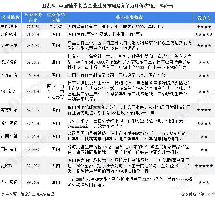 4、中国轴承制造行业企业布局及竞争力评价