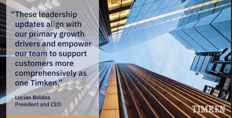 铁姆肯公司总裁兼首席执行官Lucian Boldea表示,“这些有针对性的管理层调整,与公司的核心增长驱动因素高度契合,并将进一步赋能我们的团队,以‘一个铁姆肯公司(One Timken)’的整体合力更全面地支持客户。”