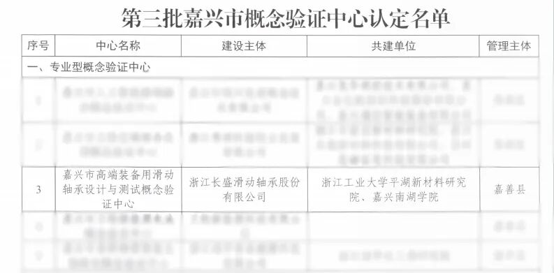 近日,嘉兴市科学技术局正式公布第三批嘉兴市概念验证中心认定结果,长盛轴承(300718)承建的“嘉兴市高端装备(885427)用滑动轴承设计与测试概念验证中心”顺利获批,成功入选专业型概念验证中心名单。