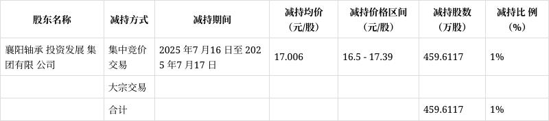 襄阳轴承5%以上股东减持计划期满,襄轴集团减持459.…